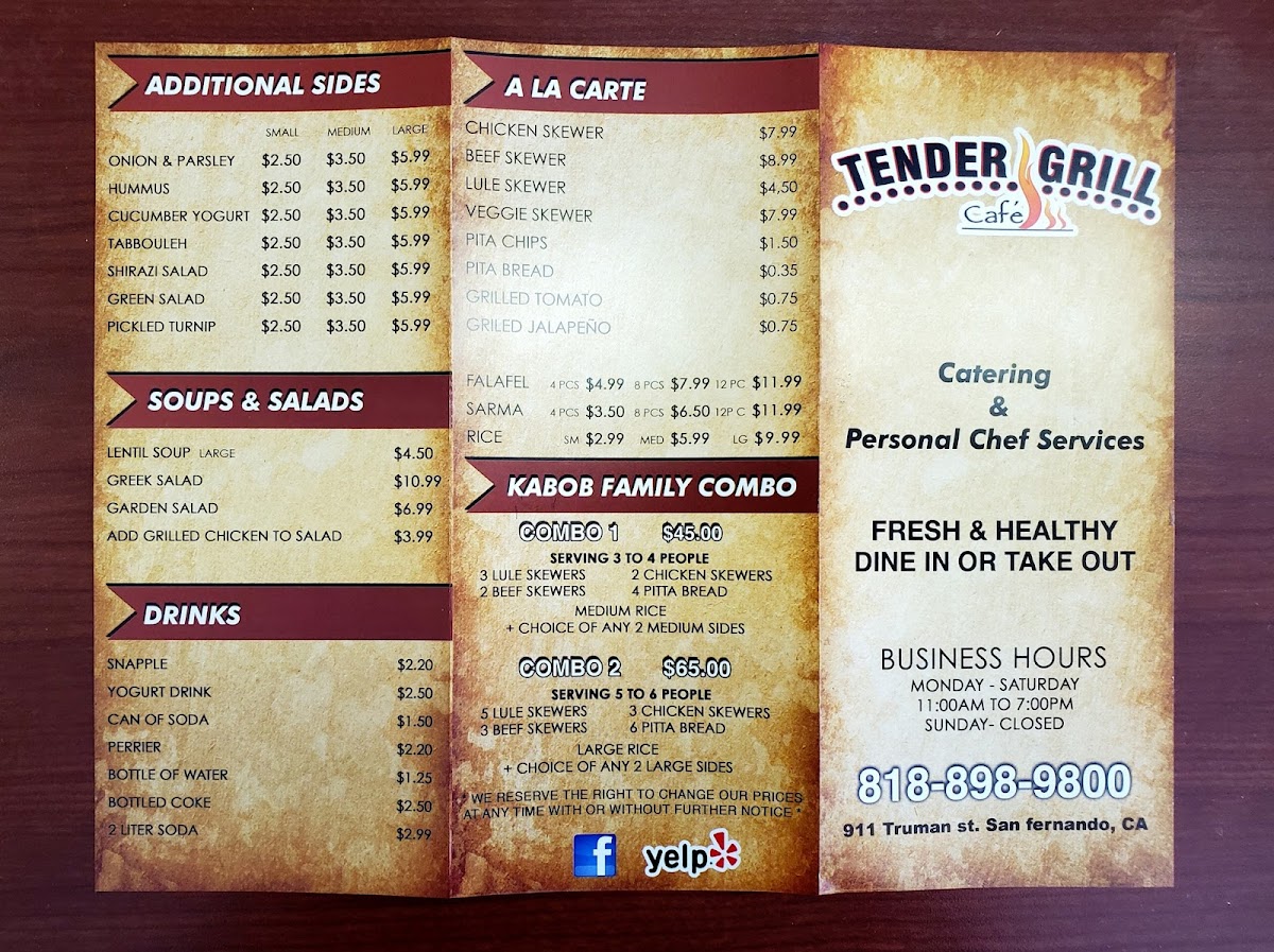 Tender Grill Cafe Menu